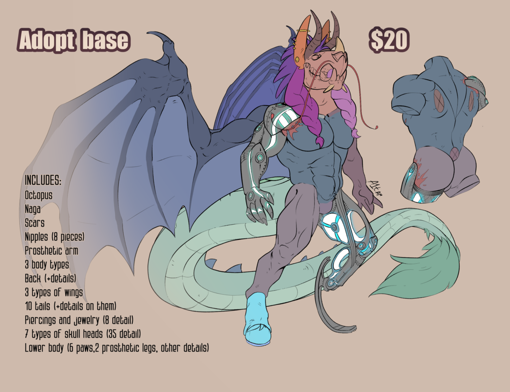 Lower body ( detail: 6 paws,2 prosthetic legs, other small details)